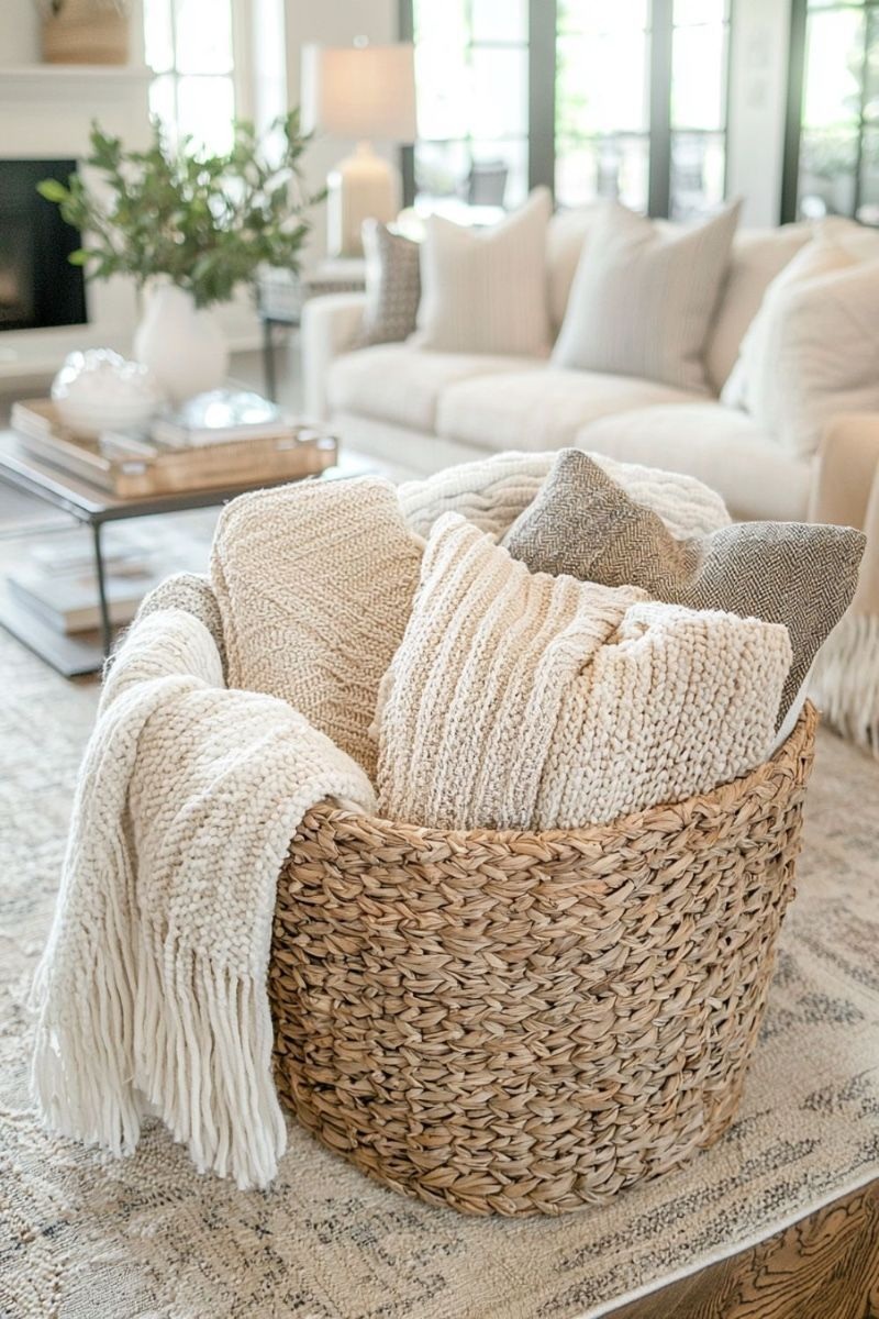 Utiliza mesas de centro que tienen espacio de almacenamiento, pufs que sirven de asiento y baúl, o estanterías que funcionan como divisores de ambiente. Opta por soluciones de almacenamiento que mantengan el orden como cestas de mimbre o armarios cerrados, asegurando que el espacio se sienta sereno y despejado.