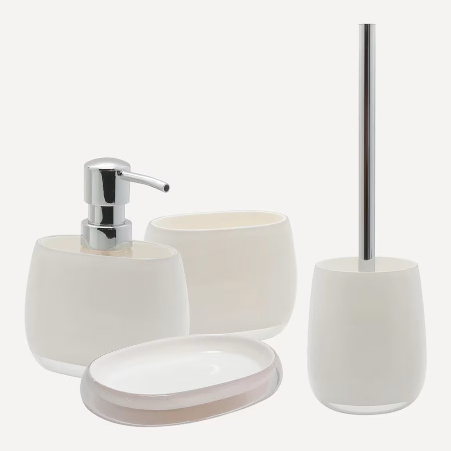 La colección de accesorios de baño consta de Bandeja para accesorios rebajada de 27,95 € a 23 €. Dosificador para encimera rebajada de 34,95 € a 29 € y portacepillos rebajado de 22,95 € a 19 €.