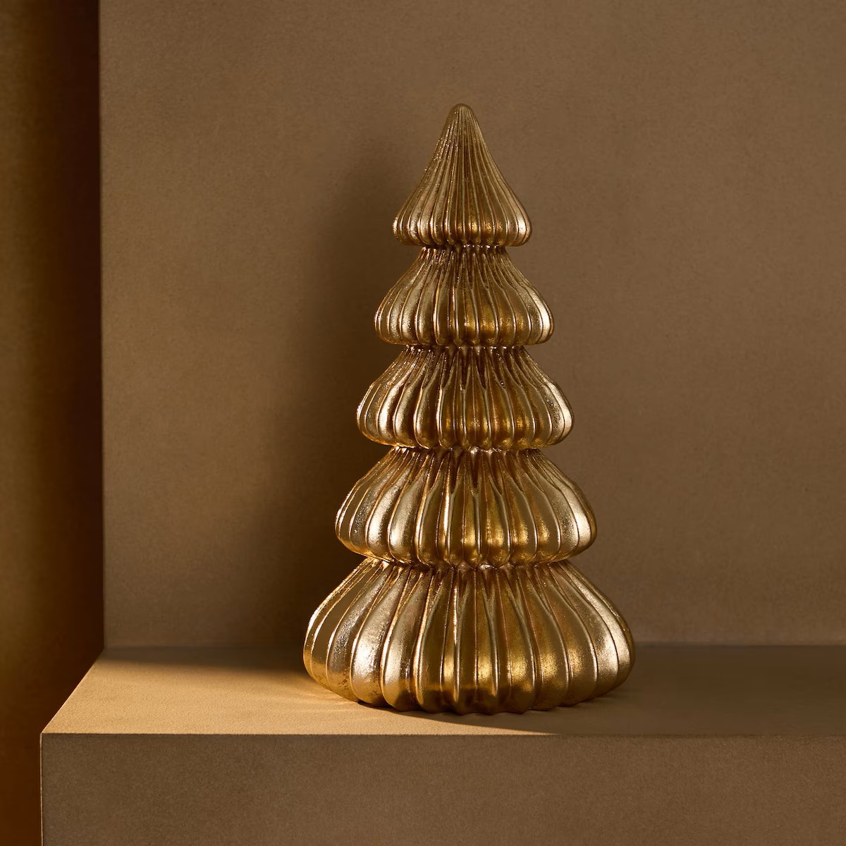 Añade un toque de lujo y brillo a tu hogar con esta elegante figura de árbol de Navidad. Fabricada en resina con un deslumbrante acabado dorado, esta pieza es el centro de mesa perfecto o el detalle ideal para decorar una estantería. Su diseño sofisticado es la clave para conseguir ese toque de glamour festivo en tu decoración de Navidad.