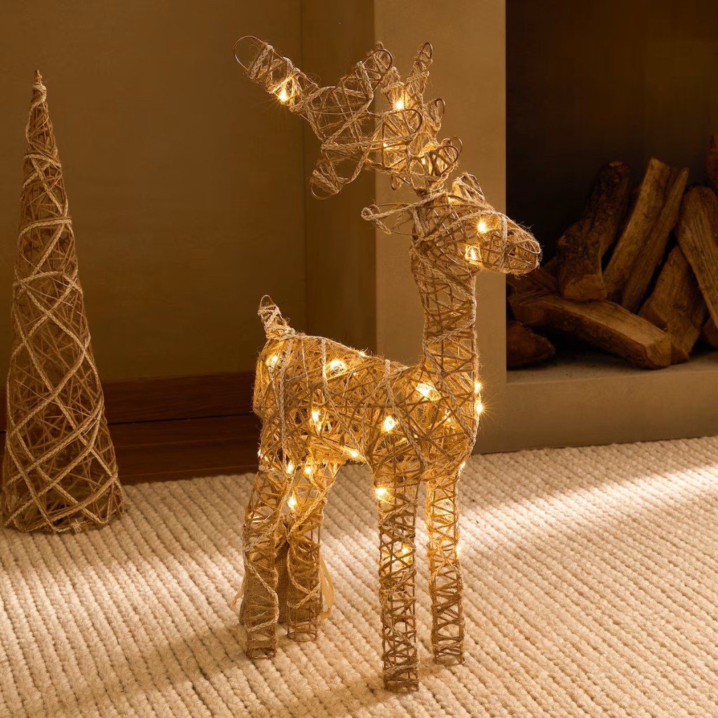 Gracias a sus 35 luces LED integradas, que emiten un brillo sutil, realza la figura y llena tu hogar de una luz suave y festiva. ¡Un detalle que te encantará para las noches de Navidad!