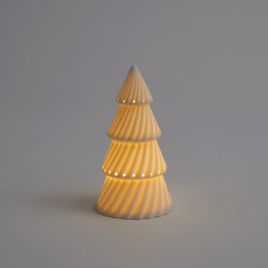 Figura árbol de cerámica con Luz LED. Ideal para una decoración moderna y luminosa. Esta figura de cerámica blanca incorpora luz LED para crear un ambiente íntimo y acogedor. Es un accesorio funcional y decorativo, perfecto para repisas o centros de mesa. Disponible en dos tamaños.