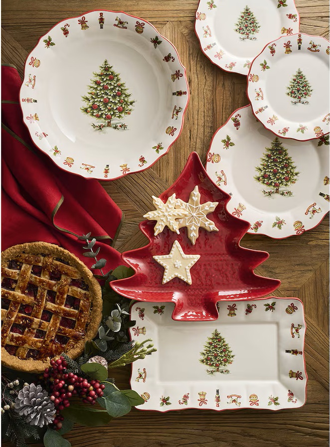 Vajilla por piezas Natale Navidad. La colección Natale es la elección ideal para vestir tu mesa con un auténtico espíritu navideño. Cada pieza, fabricada en loza resistente y con un proceso de pintado a mano con motivos festivos, destacando el clásico árbol de Navidad en el centro y un elegante filo rojo. Puedes adquirirla por piezas desde 19,95 € (como el plato llano o de postre) y es apta para microondas y lavavajillas. Lo que la convierte en una vajilla perfecta para disfrutar de la temporada festiva.