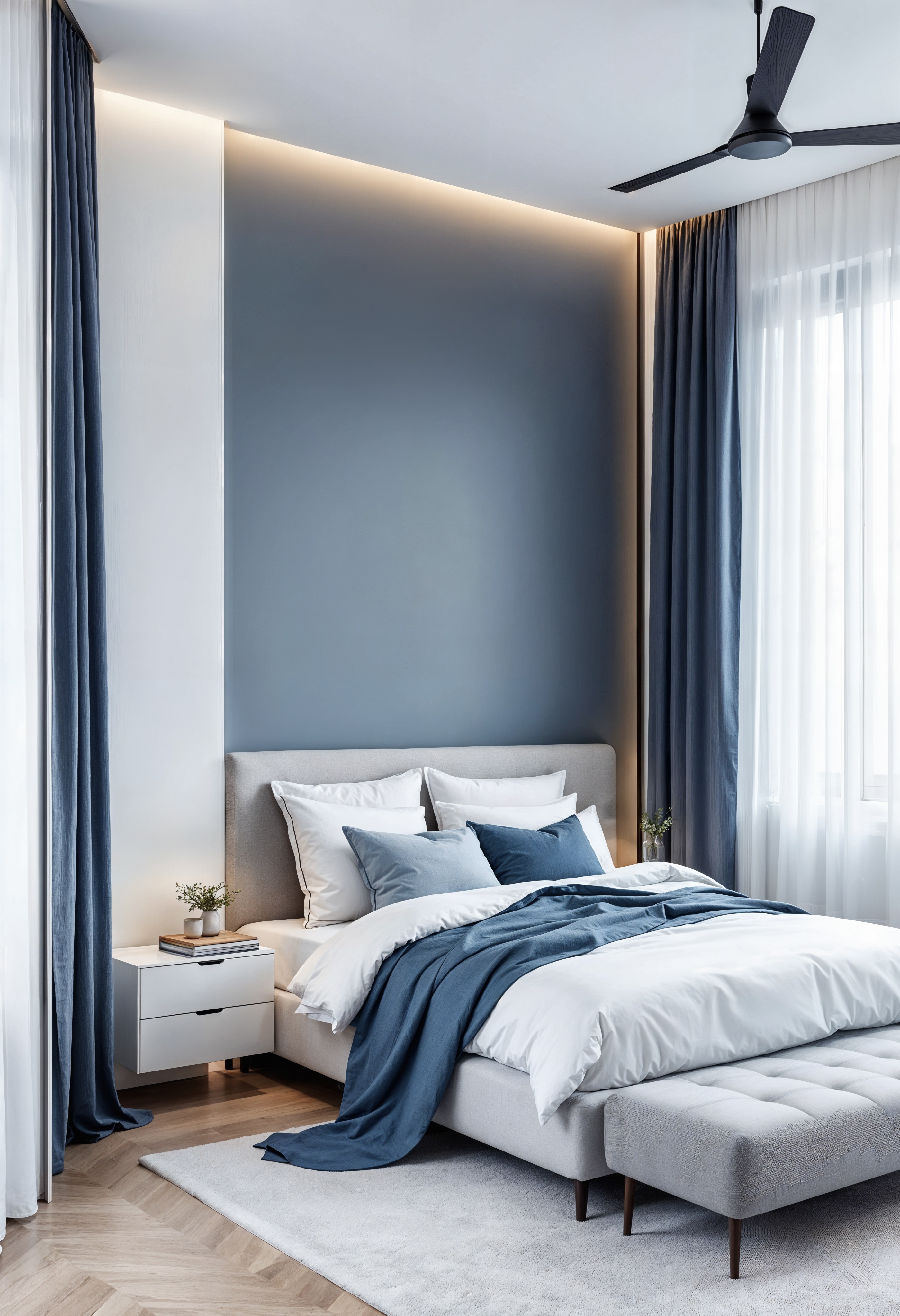 Azul profundo. Este tono tiene un potente efecto psicológico que aporta serenidad, elegancia y una gran sensación de profundidad. Es la elección ideal para dormitorios, salones, zonas de trabajo, donde se busca fomentar la concentración y el descanso.