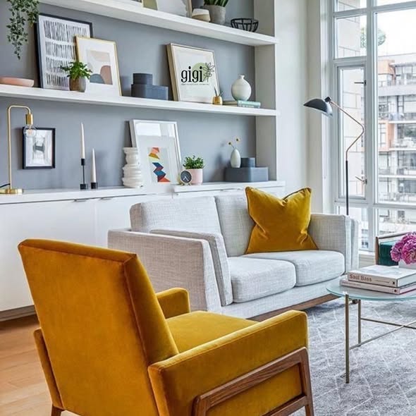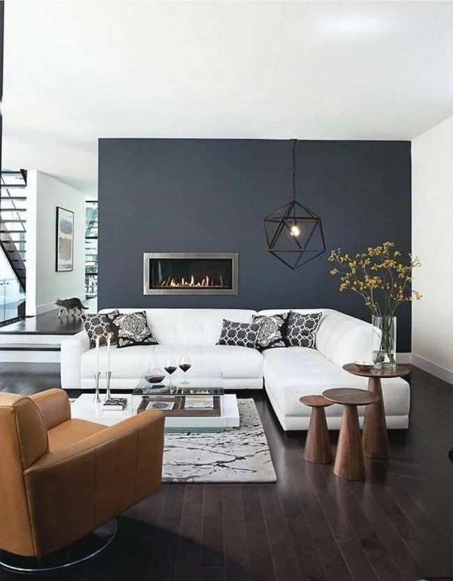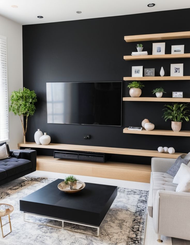 Gris carbón o negro. Ideales para generar profundidad y un contraste sofisticado. Al usarse en una pared de acento, estos colores actúan como un marco elegante para el mobiliario, siendo perfectos para espacios de estética contemporánea.