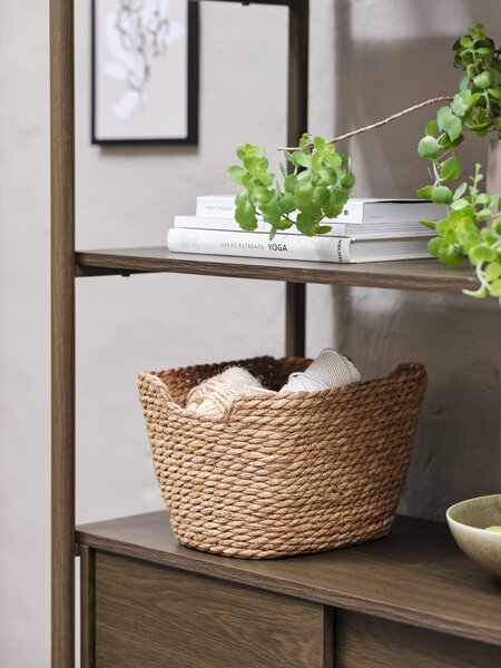 Los textiles pueden guardarse en el cesto EDDY, disponible en varios tamaños, que une funcionalidad y un estilo natural y rústico.