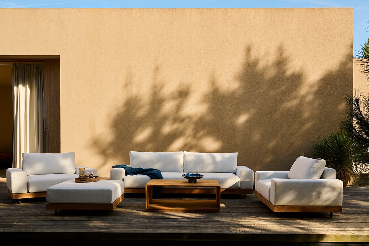 La versatilidad de las piezas permite diseñar composiciones a medida, desde salones exteriores para el encuentro hasta rincones para el relax. Destacan las texturas artesanales, los materiales sostenibles y las líneas curvas y fluidas en el aluminio, que aportan sofisticación y dinamismo.